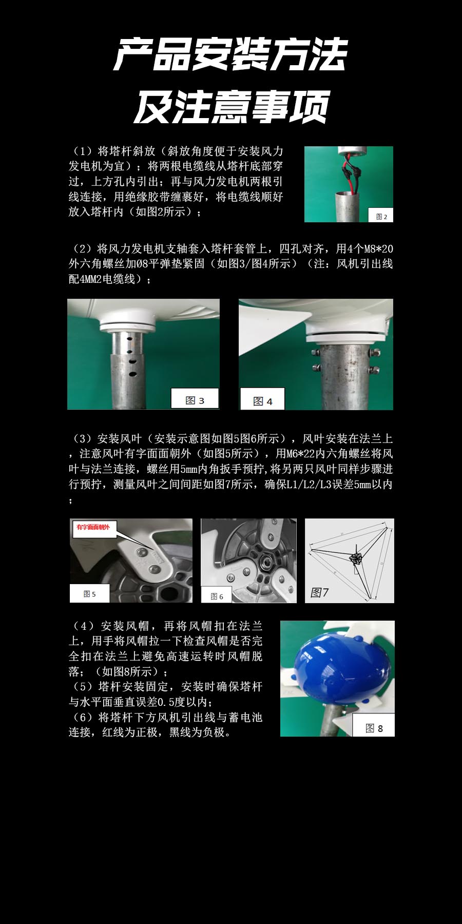 3、風葉采用高強度復合材料,強度高,韌性好,防紫外線,防腐蝕,抗大風,具有良好的氣動性能。