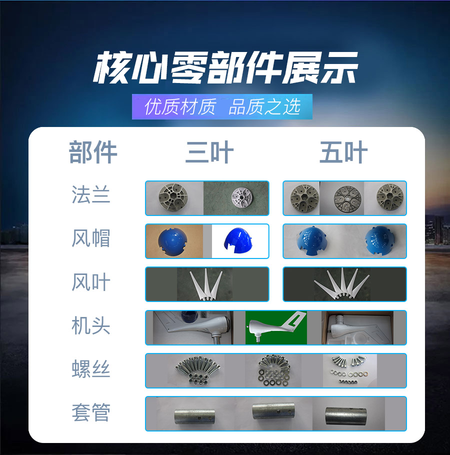 3、風(fēng)葉采用高強(qiáng)度復(fù)合材料,強(qiáng)度高,韌性好,防紫外線,防腐蝕,抗大風(fēng),具有良好的氣動(dòng)性能。