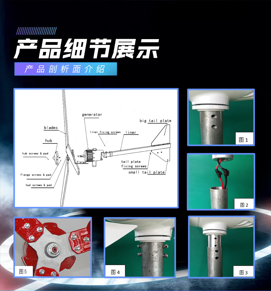 6、獨(dú)特的尾舵預(yù)偏設(shè)計(jì),自動(dòng)精確對(duì)準(zhǔn)迎風(fēng)方向,提高輸出功率同時(shí)兼顧調(diào)整和強(qiáng)風(fēng)保護(hù)。